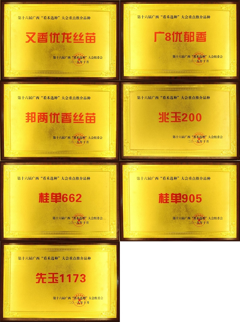 本次活动,兆和种业参展水稻玉米品种共计55个(水稻品种35个、玉米品种20个),又(yòu)香优、邦两优、广8优、桂单、兆丰等系列品种齐齐亮相看禾选种大会,表现抢眼,其中(zhōng)“又(yòu)香优龙丝苗”“邦两优香丝苗”、“广8优郁香”“桂单662”“桂单905”“兆玉200”“先玉1173”被评為(wèi)本届活动重点推介品种并授予奖牌。