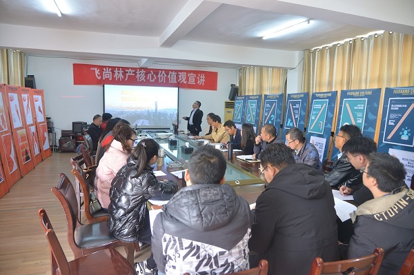 走进企业开展宣讲活动,并与员工(gōng)面对面交流,是企业文(wén)化宣贯方式的首次尝试,得到林产(chǎn)公(gōng)司员工(gōng)的一致欢迎。林产(chǎn)公(gōng)司董事長(cháng)兼总经理(lǐ)謝(xiè)有(yǒu)红表示:“集团总部第一次将飞尚集团的企业文(wén)化系统性、全覆盖地传递给了林产(chǎn)的每一位员工(gōng),对林产(chǎn)员工(gōng)深刻领会飞尚文(wén)化,更好地践行飞尚集团核心价值观具(jù)有(yǒu)积极意义。”