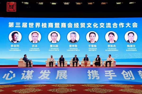 7月18日,广西壮族自治區(qū)党委、政府在南宁举行第三届世界桂商(shāng)暨商(shāng)会经贸文(wén)化交流合作(zuò)大会,以“同心谋发展、携手创新(xīn)局”為(wèi)主题,举行重点产(chǎn)业链项目签约仪式、民(mín)营企业座谈会、桂商(shāng)高质(zhì)量发展论坛、经贸文(wén)化交流会议等系列活动,共商(shāng)合作(zuò)、共谋发展。