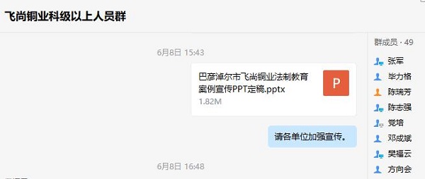 6月8日,公(gōng)司制作(zuò)法制教育宣传PPT 进行逐级學(xué)习,对在公(gōng)司内部查处的违法行為(wèi)进行通报,对在岗位上勇于发现并举报损害公(gōng)司利益的员工(gōng)进行奖励与宣传;
